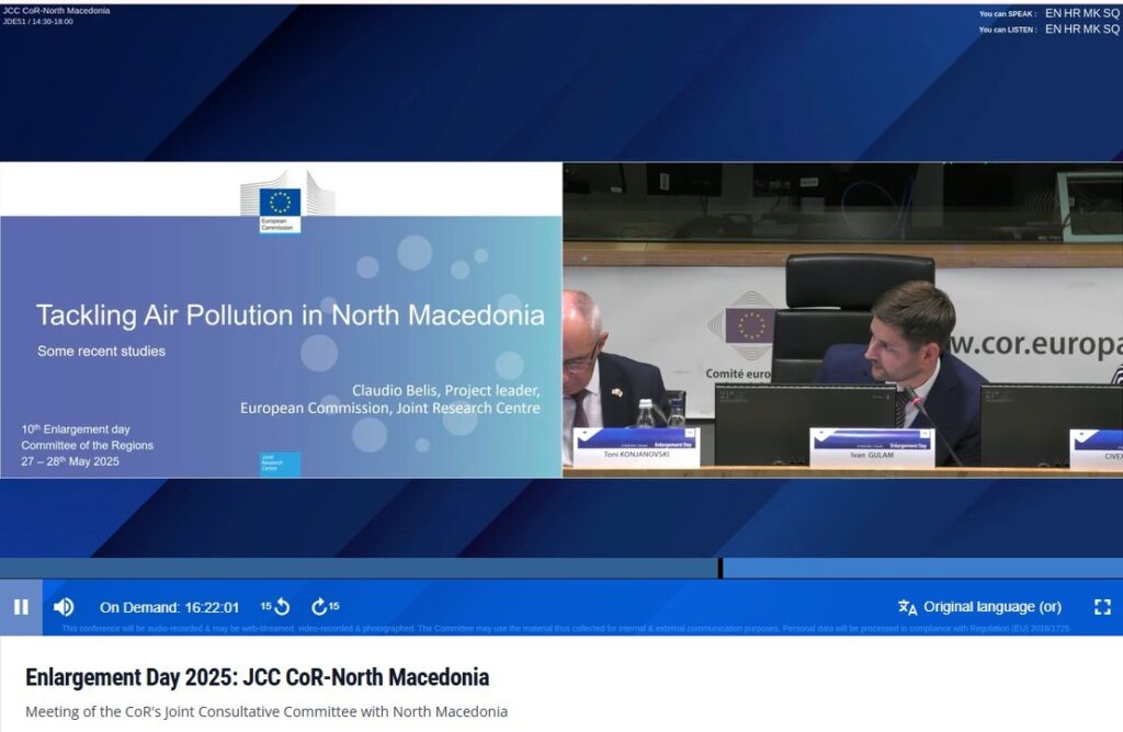 Овие студии беа презентирани во соработка со д-р Claudio Belis од Центарот за чист воздух и клима при Заедничкиот истражувачки центар (JRC) на Европската комисија – автор на официјалниот Европски водич за пропорционирање со рецепторски модели (EU, 2019).