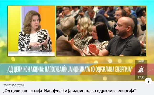 Во утринската програма „Македонија наутро“ гостинка беше Александра Димова Манчевска, проектна менаџерка во УНДП, која го водеше процесот на организација на 14. Меѓународен форум за енергија и одржлив развој (IFESD-14) од страна на УНДП. Таа сподели детали за предизвиците, успехот и значењето на овој глобален настан, кој се одржа во Скопје од 28 до 30 октомври 2025 година.